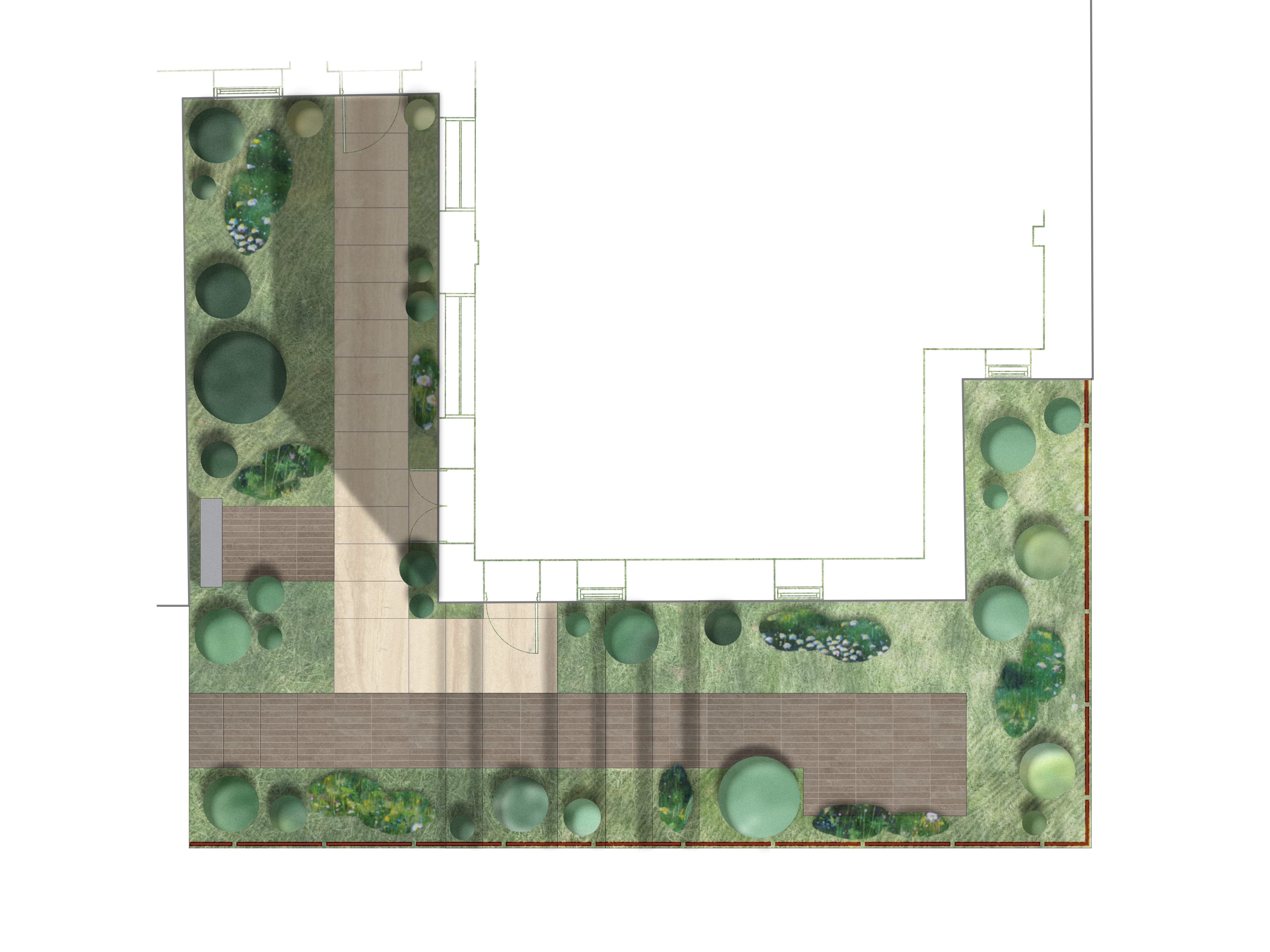 I suggested adding a landscape element to a renovation project involving a condominium gym outlooking a courtyard. I now had to produce a landscape plan (I’ve never done landscape design). After strapping myself in for the ride, and researching precedents, I got to work. Here’s the result.